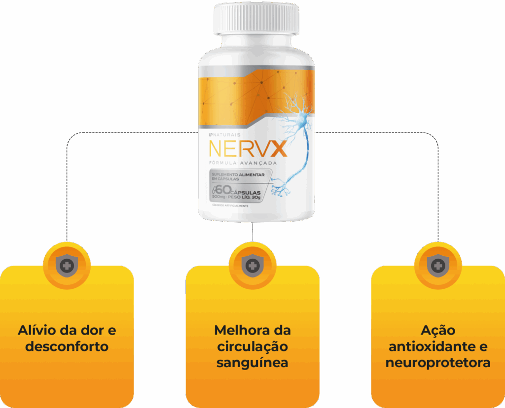 O NervX contém substâncias ativas que ajudam na manutenção da saúde dos nervos, na eliminação de toxinas e na estimulação do metabolismo, proporcionando benefícios reais para quem sofre com a neuropatia. Isso pode resultar em alívio duradouro da dor, redução de formigamentos e queimações, e melhora da sensibilidade nas extremidades.